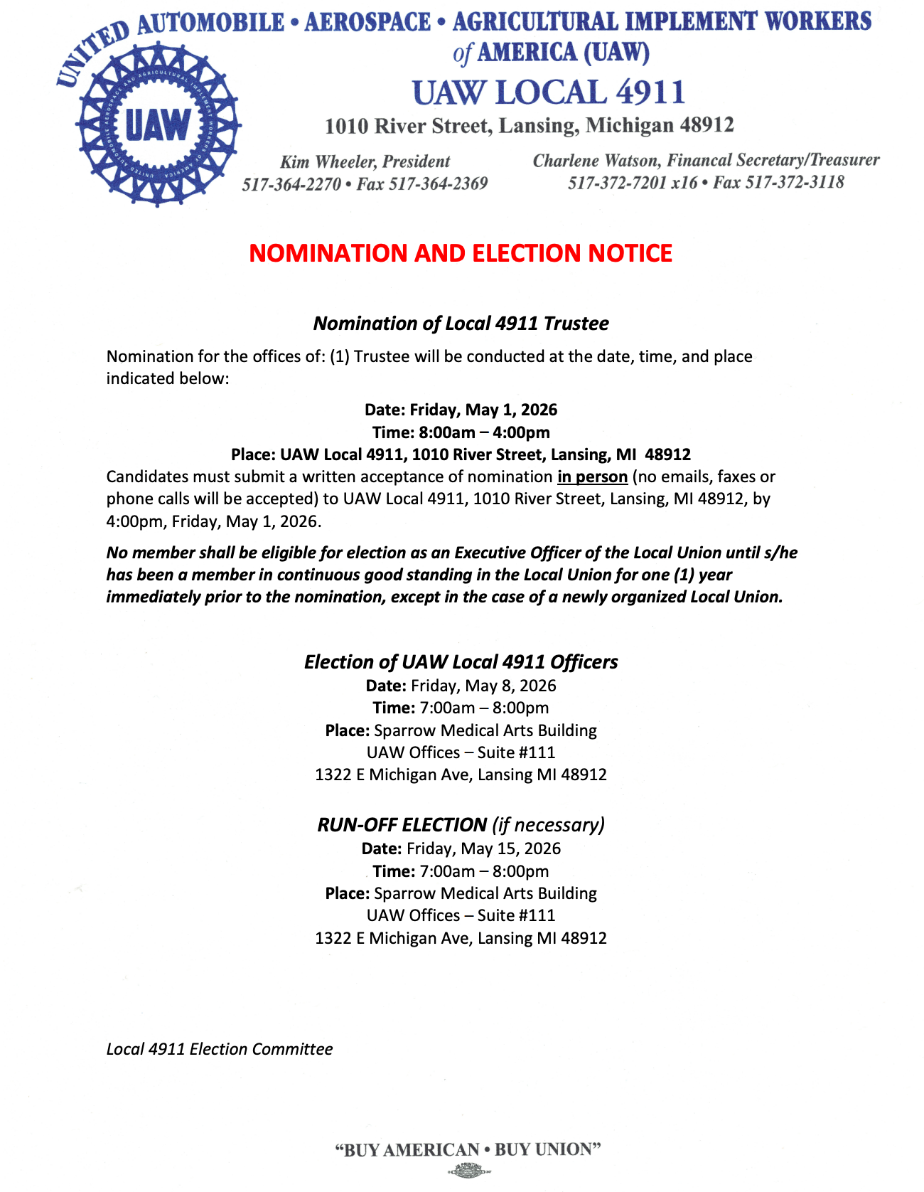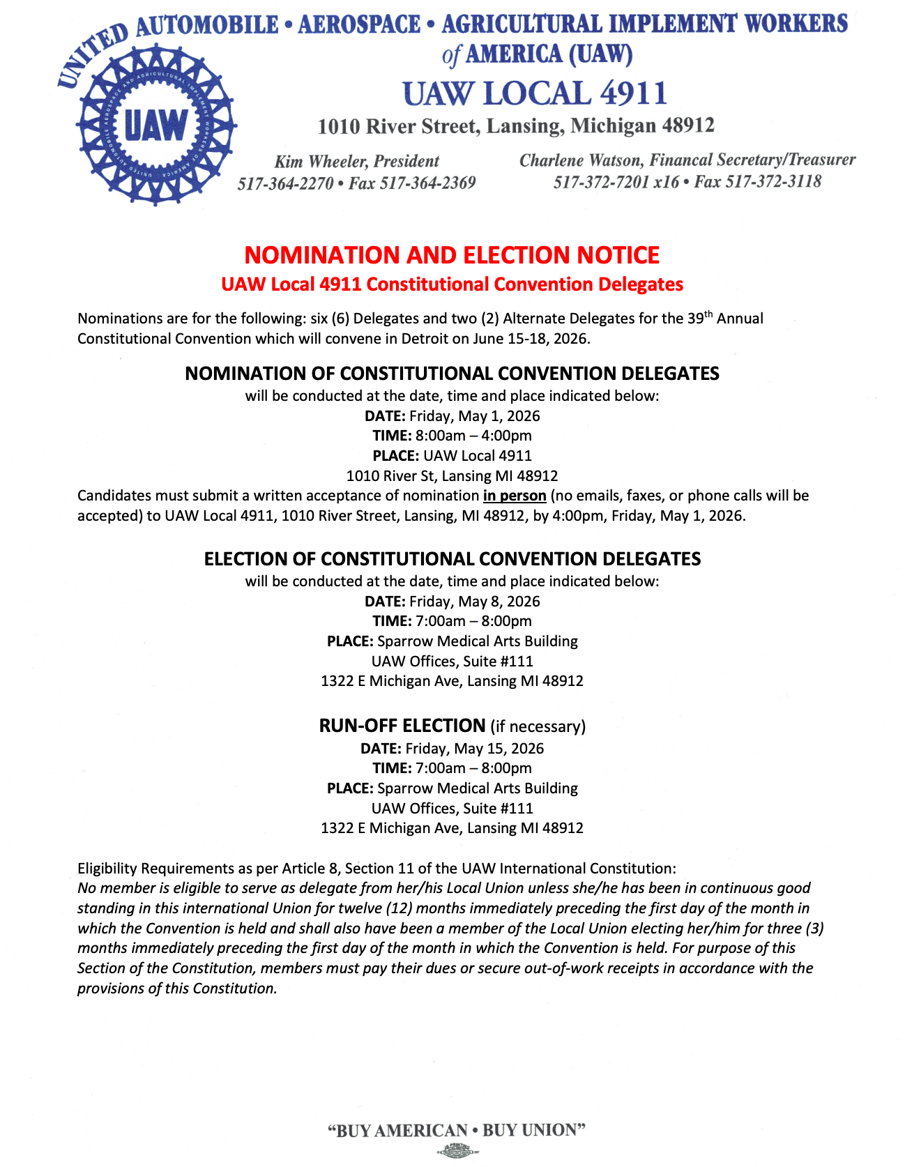 UAW Region 1-D UAW International Sparrow Hospital PECSH-MNA